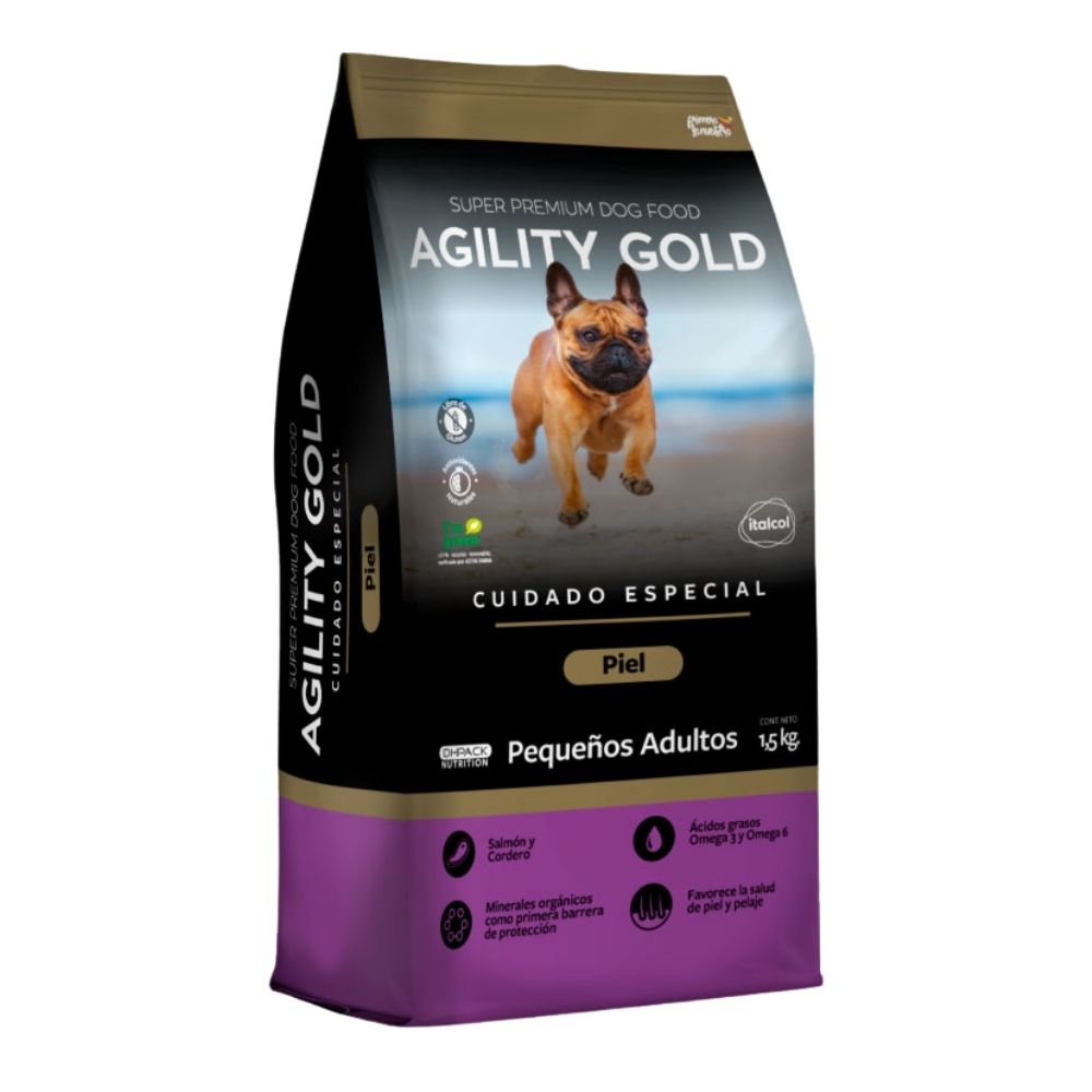 Salmón, cordero, arroz cristal, harina de pollo, almidón de arveja, aceite de pollo, pulpa de remolacha, hidrolizado hígado de pollo, cloruro de sodio, fosfato dicálcico, celulosa, cloruro de potasio, harina de alga (Schizochytrium sp), betaglucanos, manano-oligosacáridos (sacchromyces cerevisae), extracto de yucca schidigera, carbonato de calcio, hierro quelado, sulfato ferroso, hidroxicloruro de zinc, zinc quelado, selenio quelado, cobre básico cloruro, cobre quelado, yodato de calcio, hidroxicloruro de manganeso, manganeso quelado, selenito de sodio, vitamina E tocoferol acetato, vitamina A retinol, vitamina B1 tiamina, vitamina B2 riboflavina, vitamina B3 niacinamida, vitamina B5 ácido pantoténico, vitamina B6 piridoxina, vitamina B9 ácido fólico, vitamina B12 cianocobalamina, vitamina H biotina, vitamina K3 menadiona, vitamina D3 colecalciferol, tocoferoles y aceite de romero como conservantes.
