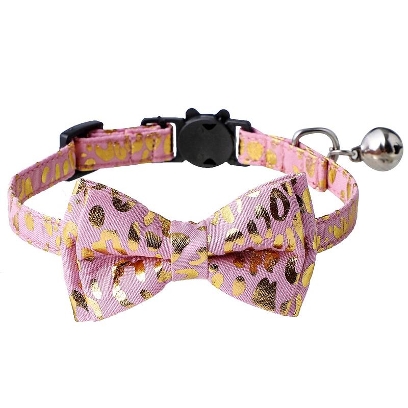 Collar para gato ajustable con moño y cascabel. Disponible en diferentes colores