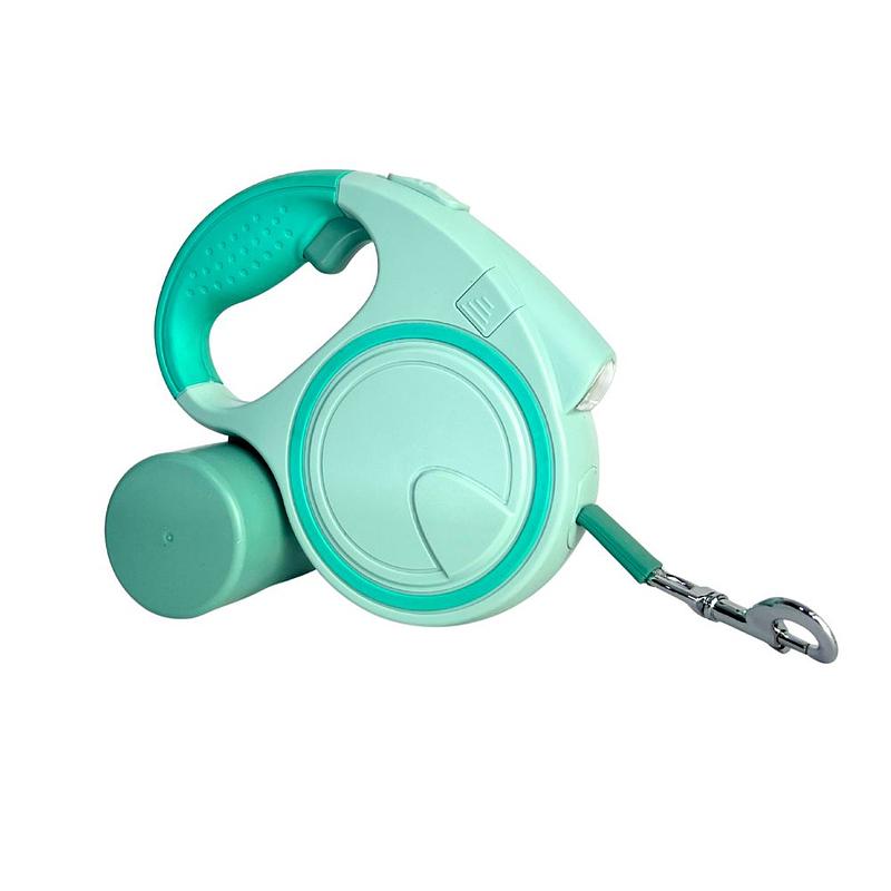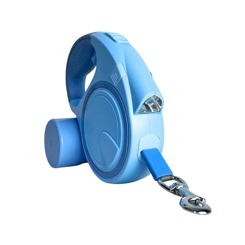 Correa retráctil para paseo de perro, con portabolsas, correa reflectiva y luz para paseos nocturnos. Disponible en varios colores