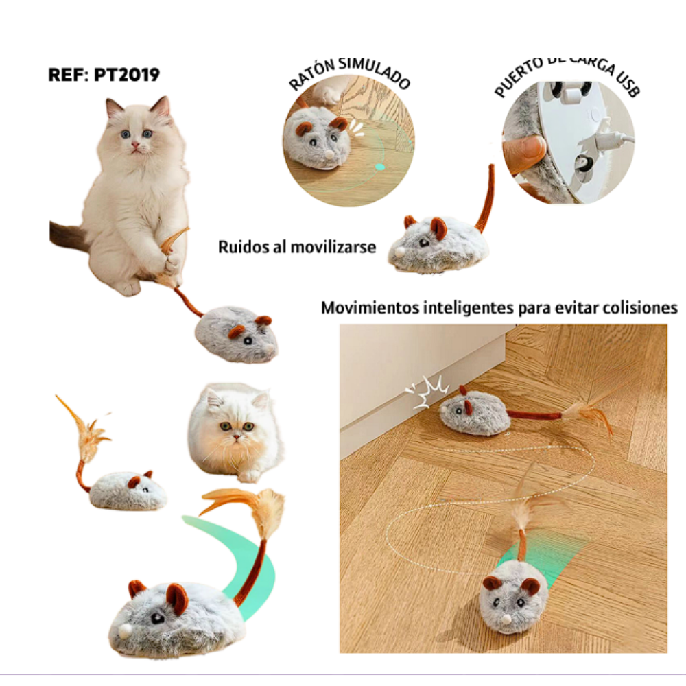 🔊 Ruidos al Movilizarse: Emite sonidos que simulan un ratón real para captar la atención de tu gato.