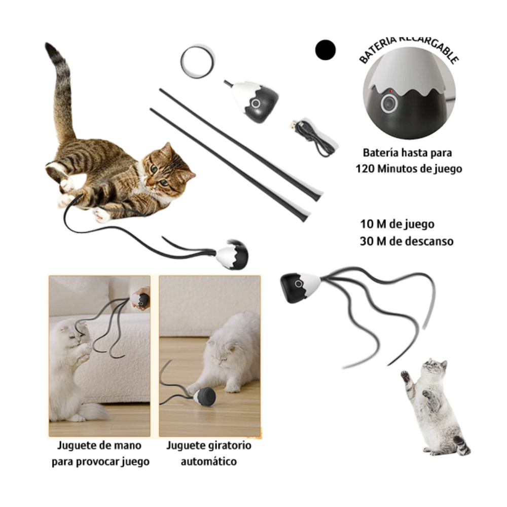 🎭 Variedad en el Juego: Satisface el instinto de caza tanto en sesiones interactivas contigo (varita) como en momentos de juego en solitario (giratorio automático).
